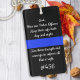 Des policiers de la Ligne Bleue Mince Porte - clé de prière - "Dieu, bénis nos policiers. Gardez-les en sécurité jour et nuit. Donnez-leur la force et le courage de faire respecter tout ce qui est juste." Parfait pour tous les policiers et agents de la force publique. Ces porte - clés de prières de police sont parfaits pour les services de police, ou pour envoyer comme cadeau de remerciement aux policiers. Personnalisez avec le numéro de badge ou supprimez le champ vide. Magnifique cadeau à une académie de police diplômée des officiers de police. DROIT D'AUTEUR © 2020 Judy Burrows, Black Dog Art - Tous droits réservés. Prière de la police Personnalisée Mince Porte - clé de ligne bleue