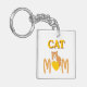 Celebrate a special Cat Mom this Mother's Day with this custom double-sided acrylic keychain. The front features a charming "Cat Mom" design with a ginger tabby cat resting on a golden yellow heart.
