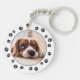 Joli porte - clé amoureux des chiens avec photo de chiot et cadre empreintes de pattes de chien. Empreintes de pattes noirs sur arrière - plan blanc. Cliquez sur Personnaliser ce Modèle pour remplacer la photo de chiot par votre propre photo de chiot Instagram et créer votre propre design unique. Un cadeau personnalisé pour les amateurs de chiots ! Si vous souhaitez en modifier davantage, vous pouvez remplacer certains empreintes de pattes par du texte personnalisé ou un nom de chiot.