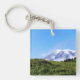 Une vue sur le Mont Rainier et les collines verdoyantes environnantes pendant une journée ensoleillée de printemps.