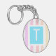 Porte-clefs Rayures d'aquarelle rose violet monogramme