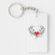 Coeur rouge peint de façon artistique avec ailes d'ange gris, décoré de contour lisse noir.