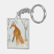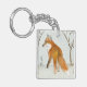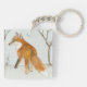 Une aquarelle représentant un renard rouge lors d'une chasse dans le paysage de neige de l'hiver orne ce porte - clé !