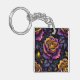 motif rose, floral, violet et jaune avec arrière - plan noir,