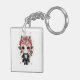 A delightful double-sided keychain design of a kawaii rose-headed character dressed like a charming gentleman, holding a rose and surrounded by tiny hearts. Perfect for romantic gifts or floral lovers with a cute twist.