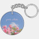 Ce Porte - clé présente un rosier rose sous un ciel bleu. Jolie idée cadeau personnalisable pour les femmes!