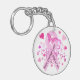 Un ruban rose de style vintage avec les messages de "Espoir, Courage, Amour" et "Trouver un remède" et un papillon et des coeurs avec un bel arrière - plan floral. Portons le rose pour soutenir la sensibilisation au cancer du sein en octobre.