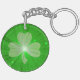 Un design moderne avec un shamrock sur un arrière - plan vert "brillant". Porte - clé avec un design personnalisable pour vous de personnaliser avec votre propre texte, photos et idées. Veuillez noter que ce design a été créé à l'aide de photographies originales et de techniques numériques de Jess Perry, et il brille ou contient de vrais étincelles.