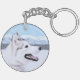 Porte-clefs Sibérie Husky (argent et blanc) Peinture Chien Art