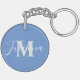 Porte-clefs Simple Gris Script Monogramme Porte - clé Bleu