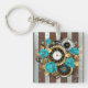 Porte-clefs Steampunk Clock and Turquoise Roses on Striped