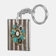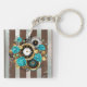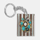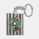 Porte-clefs Steampunk Clock and Turquoise Roses on Striped