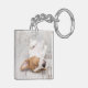 Modèle en acrylique élégant, simple et moderne avec photo de porte - clé personnalisé et nom à la main sur le devant, à l'arrière avec photo seulement. Ce porte - clé photo minimaliste et facile à customiser est un cadeau parfait pour les amoureux des animaux de compagnie. © y.BEE PAPERIE