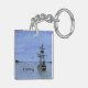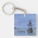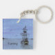 Un tableau aquarelle d'un grand voilier silhouetté contre le ciel du soir orne ce porte - clé personnalisable !