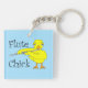 Flute chick en texte bouclé avec un mignon poussin jaune jouant une flûte est un modèle humoristique de cadeau en vent de bois pour les professeurs de musique et les musiciens de vent de bois dans les groupes de concert et de marche.