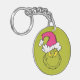 This fantastic, bold illustration is a close-up portrait of the Grinch in full mischievous mode! He has his signature sly grin and bright yellow eyes, but his look is updated with a large, fluffy Santa hat in a fun, unexpected pink/fuchsia color instead of the traditional red. This graphic is perfect for anyone who loves the holidays but embraces a non-traditional, delightfully grumpy, and colorful style!