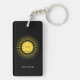 Yellow sun with black circle Total Solar Eclipse August 2026 personalized with your text - name, date, and place keepsake souvenir double-sided keychain.