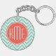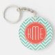 Porte-clefs Vert chic Chevron d'Aqua et monogramme fait sur