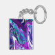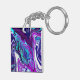 Porte-clefs Violet, Bleu et Turquoise Abstrait Fluid Art