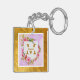 Porte-clefs Watercolor Flower Gold Frame | Custom Name