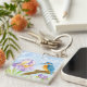 This keychain features a vibrant kingfisher perched among softly flowing purple and white irises, beautifully captured in a loose watercolor style. The peaceful nature scene symbolizes calm, hope, and quiet strength, creating a small yet meaningful accessory to carry with you on your keys, bag, or purse each day.