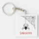 Un porte - clé pour les amateurs d'araignée. Graphique stylisé d'une araignée noire descendant de sa toile. Sous le graphique, votre nom est défini à l'aide d'une police rouge tendance qui complique les petits yeux rouges de l'araignée et ajoute une touche de couleur. Même les araignées détestent ce design.
