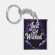 Ce porte - clé animé présente une impression d'art inspirée de whimsigoth avec les mots amusants Just Got Wicked.