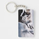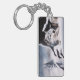 Un loup qui s'allonge dans la neige de l'hiver avec un château derrière le loup.