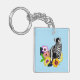 Un zèbre avec marguerites africaines en toile de fond de bleu