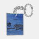 Un tableau aquarelle de zèbres dans un trou d'arrosage en soirée orne ce porte - clé personnalisable !