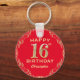 16e Anniversaire Parties scintillant rouge et or Porte - clé cadre de la fête. Pour plus de personnalisation, cliquez sur le bouton "Customiser" et utilisez notre outil de conception pour modifier ce modèle.