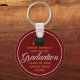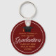 This chic red and gold custom senior graduation keychain features classy white typography under a high school or college name for the class of 2023. Customize with your graduating year under the elegant calligraphy for a great personalized graduate key chain gift.