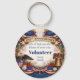 Celebrate America’s 250th Anniversary with this dignified patriotic keychain design featuring classic U.S. symbols including the American flag, a proud bald eagle with shield, the Liberty Bell, fireworks, and red, white, and blue florals. The elegant banner honoring the 250th Anniversary frames a central area designed for personalization, making this a meaningful keepsake for historic celebrations.