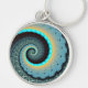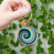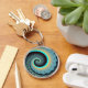 Porte-clés Abstraite spirale d'art fractal bleu turquoise ora