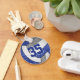 Cette équipe colore le porte - clé de volley-ball avec l'équipe personnalisée et le nom de la mascotte de l'école dispose d'un motif kaléidoscopique floral mélangé avec les panneaux bleu et gris du volleyball sur le devant et un simple volleyball blanc sur le dos - personnalisez avec son nom, son nom d'équipe et son numéro de maillot - par katz_d_zynes
