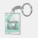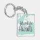 L'aventure attend le porte - clé avec une silhouette de carte du monde blanc et vert menthe.