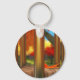 After the wind a single fallen leaf lies where it fell on a silent wind chime. On the ground beneath the still-green grass is covered with yellow and red leaves. In the background a crimson and gold autumn orchard reflects its colors in the silver bars of the chime.