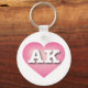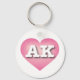 Ce porte - clé présente un coeur rose et calme, cool et ramassé, avec un centre blanchi à la chaux contenant les lettres coques en haut blanc et gras AK, l'abréviation officielle de Alaska, la dernière frontière.