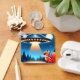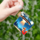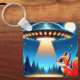 Ce porte - clé a un mignon renard et un vaisseau spatial alien dessus.