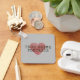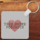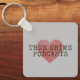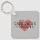 Un porte-clés pour les amateurs de podcasts sur les vrais crimes partout, avec un cœur d'empreinte digitale rouge et un texte de style machine à écrire.