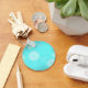 Painting of circles and bubbles that appear to be floating on a light blue green background, that looks cool and light, is printed on keychains. Can customize the key chain with your own text.