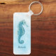 Personnalisez ce porte - clé à thème sous-marin qui met en vedette un cheval de mer d'aquarelle mignon sur une vague océanique.