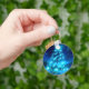 Un porte - clé avec un sapin de Noël décoré de lumières éclatantes bleu-électrique. Étincelant et scintillant de joie festive.