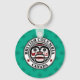 Procurez-vous ce superbe porte-clés à bouton basique avec un superbe crâne en larmes Haida de la Colombie-Britannique, au Canada. Le fond est vert.