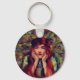 Porte-clés Art nouveau déco femme paon plumes élégant