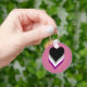 Bouton de base Porte - clé avec le design de coeur dans les couleurs de l'asexualité; rose, jaune et bleu rayures drapeau de la fierté, arc-en-ciel conception d'amour, sur arrière - plan rose