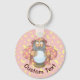 Vieux sorcier avec cape rose regardant la boule de cristal magique. Texte personnalisé des deux côtés.