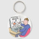 Whilst online banking at his home computer, a man gets offered a virtual pen and chain. Funny banking themed cartoon in color.