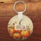 Porte - clé personnalisé avec une illustration rustique avec citrouilles oranges et feuilles d'automne. Une ambiance grunge d'automne.