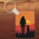 Ce design chaleureux saisit le coucher de soleil parfait, avec une silhouette saisissante d'une personne et de son chien loyal. Contre des montagnes majestueuses et des cieux dorés, il illustre magnifiquement le lien spécial entre les humains et leurs compagnons à quatre pattes dans la nature. Parfait pour les amoureux des animaux et les amateurs de plein air